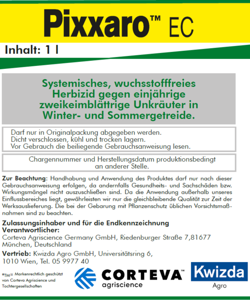 25 g Express SX + 0,25 l Pixxaro EC/ha gegen breitblättrige Unkräuter