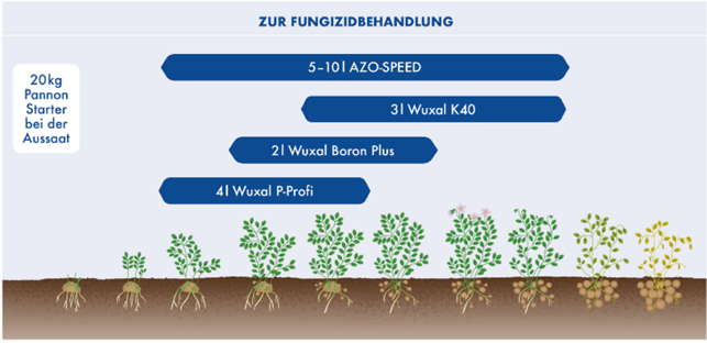 3 l Wuxal K40 gegen Trockenstress + 10 - 20 l Azo-Speed/ha zur Sicherung des Eiweißgehaltes |