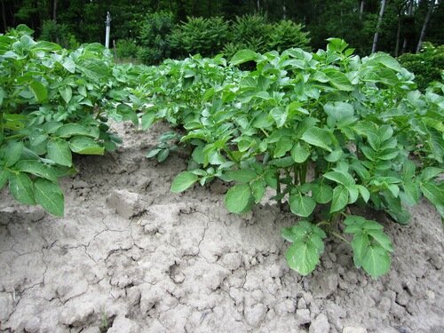 Nach der Hitzeperiode im Juni folgte ausgiebiger Niederschlag den ganzen Juli hindurch. Zur Folge hatte das eine Vitalisierung der Kartoffelstaude, welche nochmal durchgetrieben hat, teilweise wieder erblühte. Die größere Gefahr findet jedoch im Boden statt, weshalb es durch das plötzlich verfügbare Wasser zu Knollendurchwuchs und Kindelbildung kommen kann.