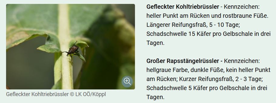 Rapsstängelrüssler und aktuell vor allem der Gefleckte Kohltriebrüssler